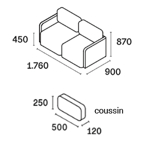 Fauteuil attente BUX 2S + ACCOUDOIRS , 2 places, revêtement aux choix, accoudoirs rembourrés + coussins en option
