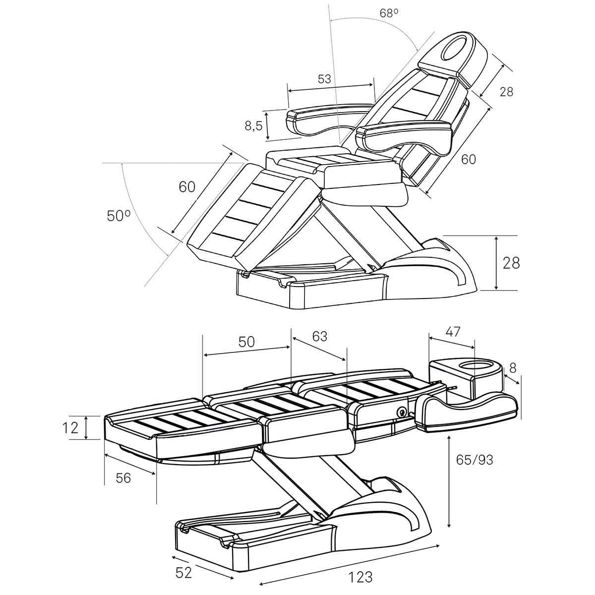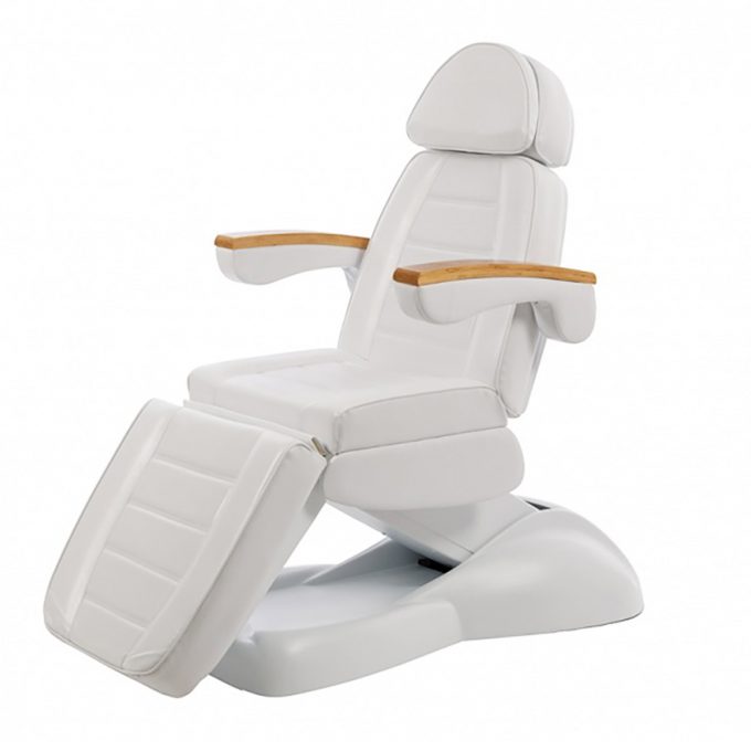 Fauteuil esthétique CLAVI 3 à 3 plans, dispose de 3 moteurs qui contrôlent la hauteur du fauteuil, l’inclinaison du dossier et des jambes. Coussin et trou pour visage et accoudoirs rabattables. Porte-rouleau intégré.