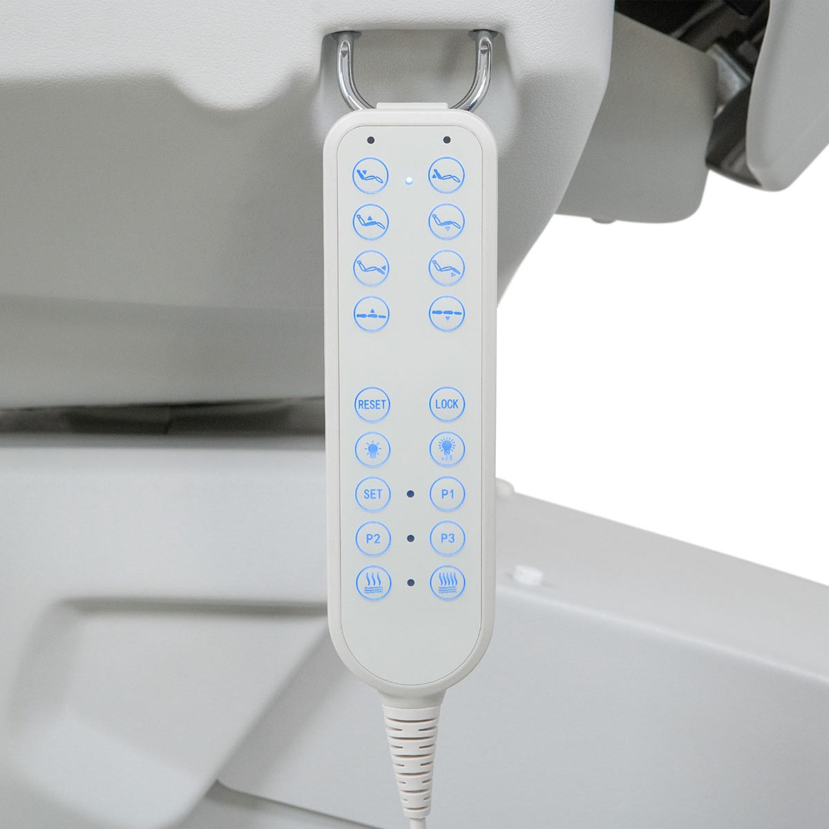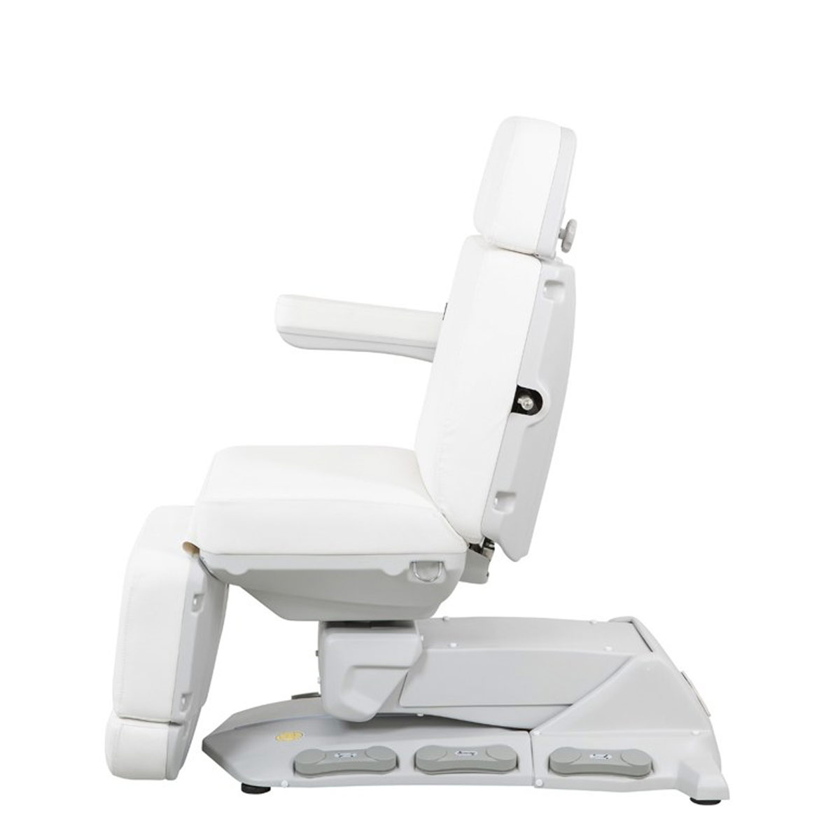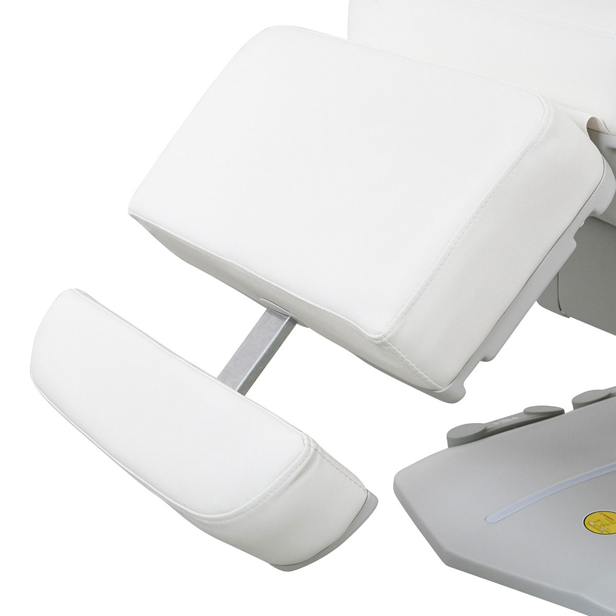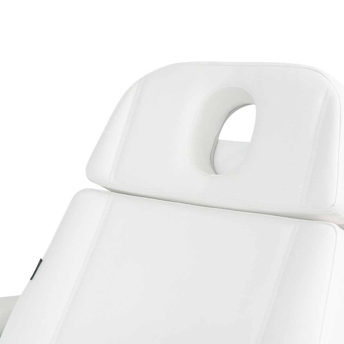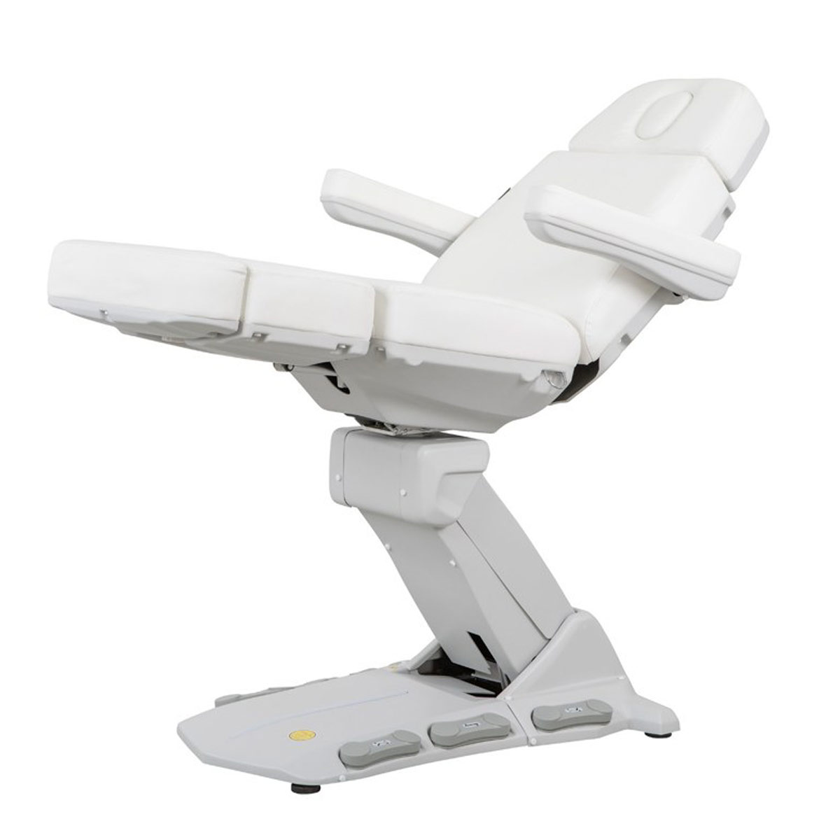 Fauteuil esthétique MAXI COZY WHITE , dispose d’une motorisation à 4 moteurs, rotation à 110°, système chauffant intégré et positions mémorisables. Une solution performante et modulable pour les soins esthétiques et le bien-être.