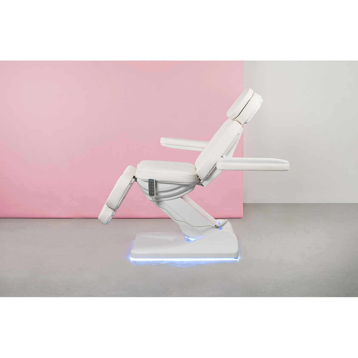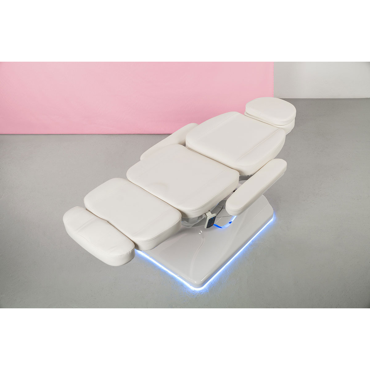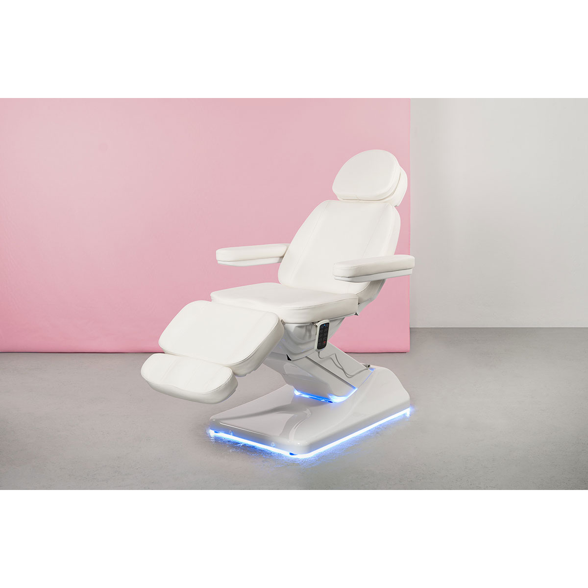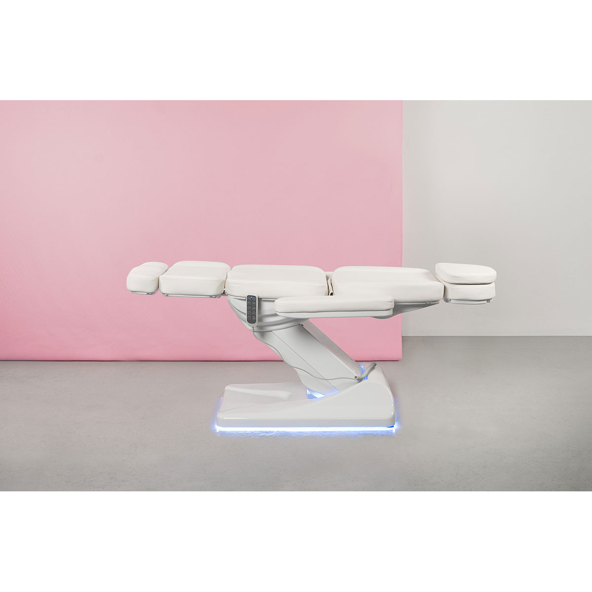Équipée de 4 moteurs puissants et silencieux, la table permet un réglage fluide et indépendant de la hauteur, de l’inclinaison du dossier, de l’assise et du repose-pieds. Ces ajustements motorisés assurent une position parfaitement adaptée à chaque type de soin.