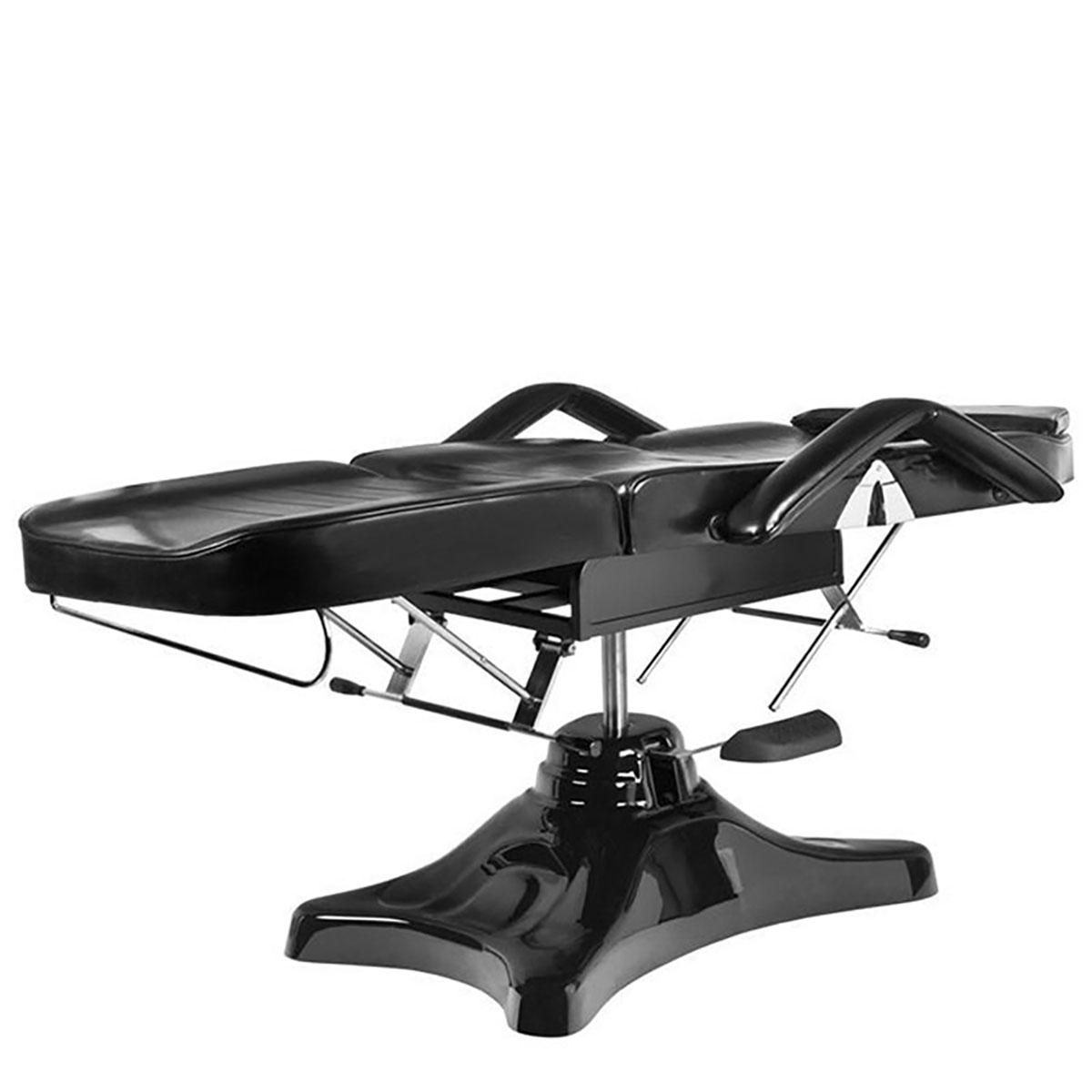 Fauteuil esthétique SART BLACK , 3 sections conçue pour les instituts et spas. Structure renforcée assurant une excellente stabilité, réglage en hauteur hydraulique, dossier et repose jambes ajustables. Accoudoirs amovibles, têtière avec trou facial et coussin pour un confort optimal lors des soins.