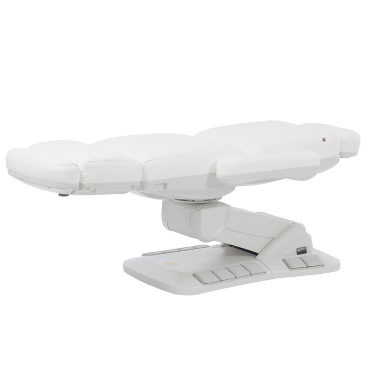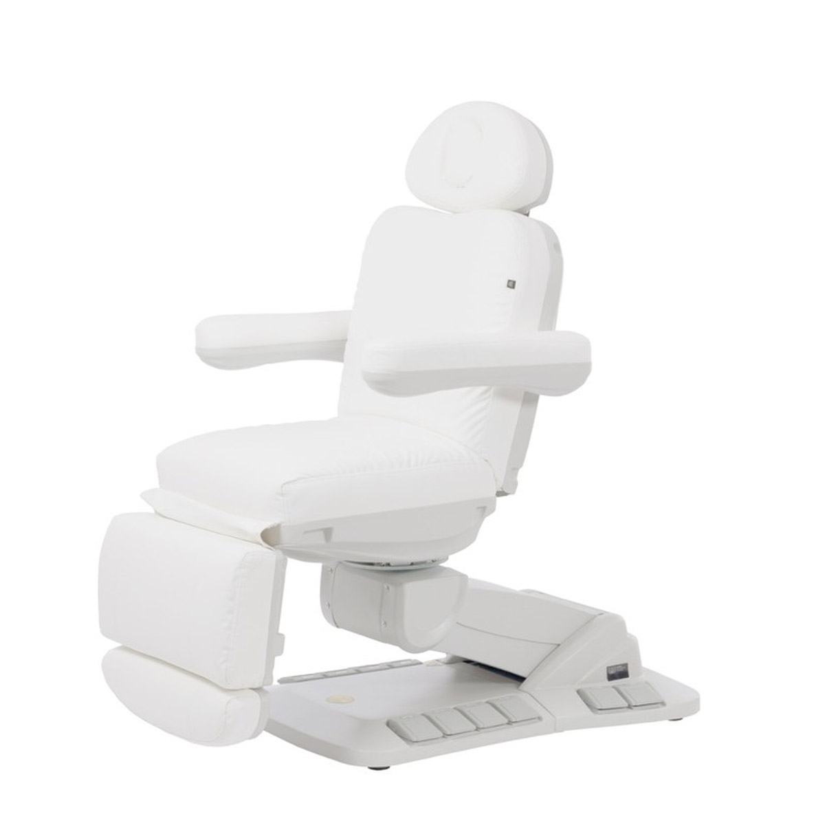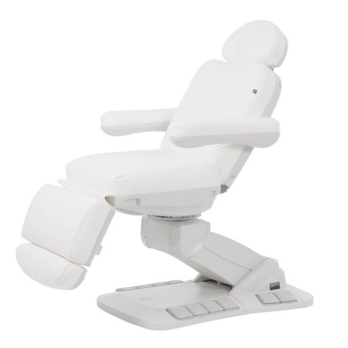 Fauteuil esthétique TELLA, dispose de 4 moteurs avec rotation 90°, accoudoirs rabattables et commandes intégrées. Confort et ergonomie professionnels