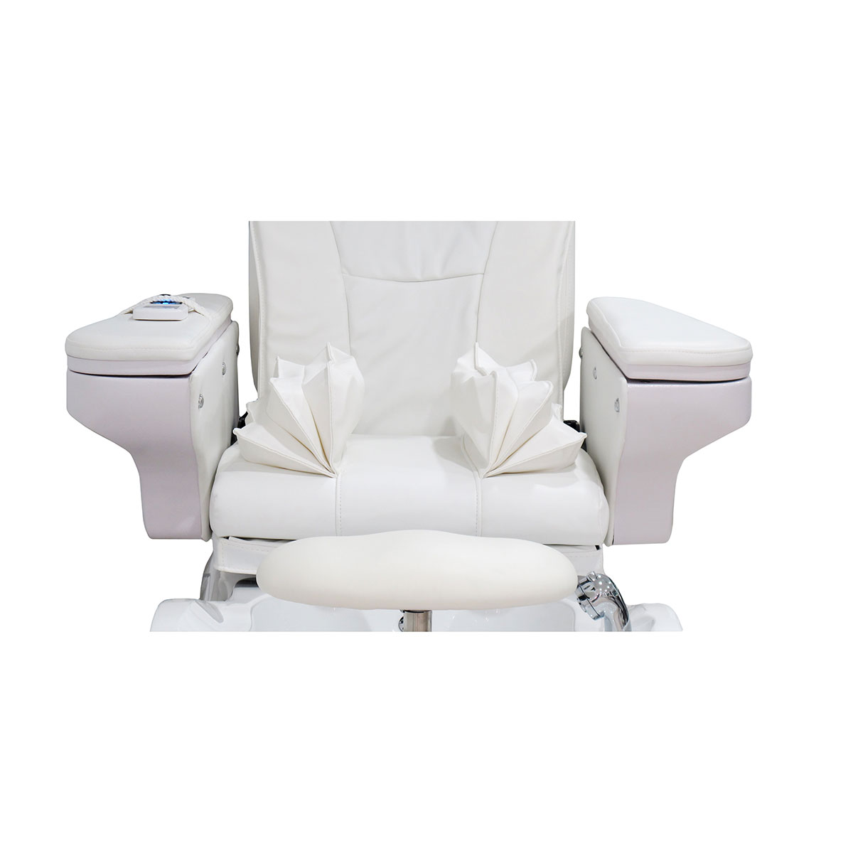 Fauteuil pédicure CALN WHITE, réglages double motorisations du dossier et de l’assise, accoudoirs rabattables, massage intégré et bain de pieds avec hydromassage , avec revêtement en PU premium