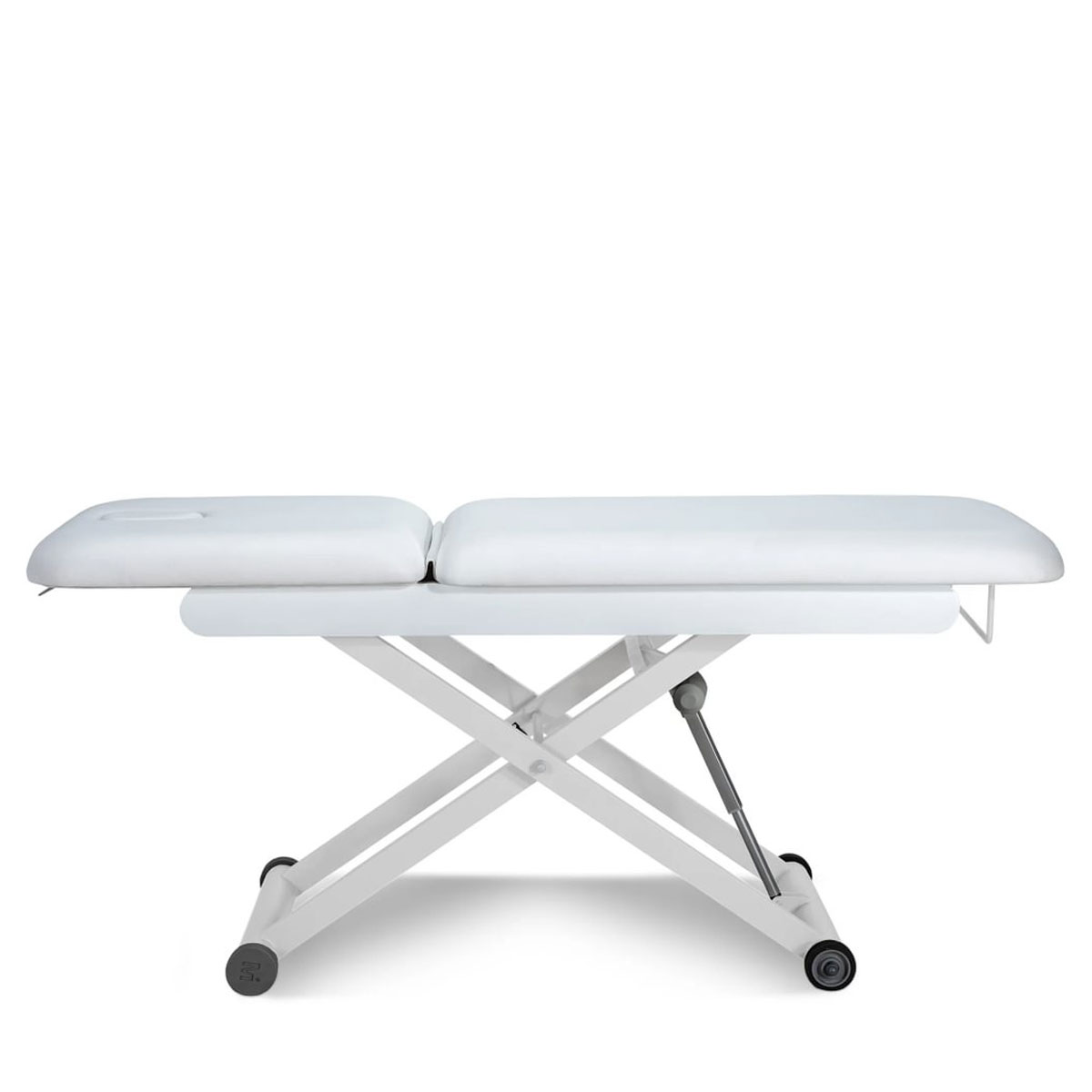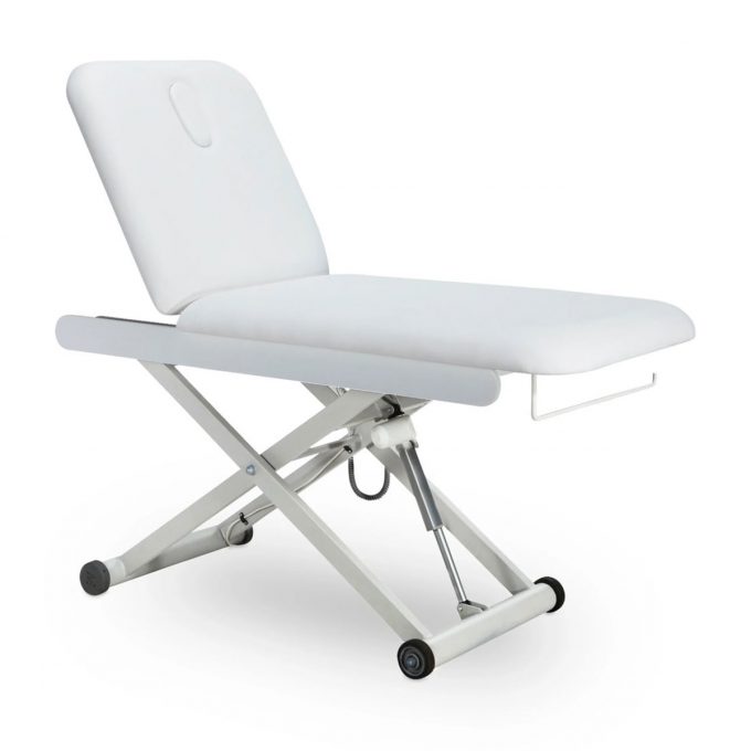 Sa structure robuste garantit une excellente sécurité, tandis que son moteur intégré permet un réglage facile de la hauteur. Le dossier ajustable par vérin à gaz s’adapte parfaitement à chaque type de soin.