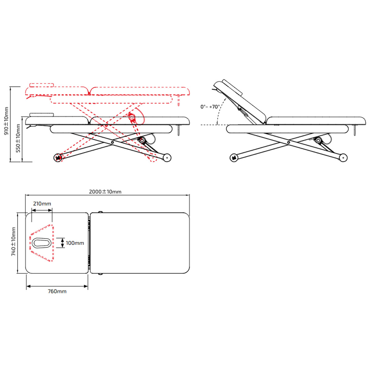 Équipée d’une télécommande filaire, d’un porte rouleau intégré et de roulettes de déplacement, cette table facilite votre organisation au quotidien. Compatible AC 100–240V, elle répond aux standards professionnels.