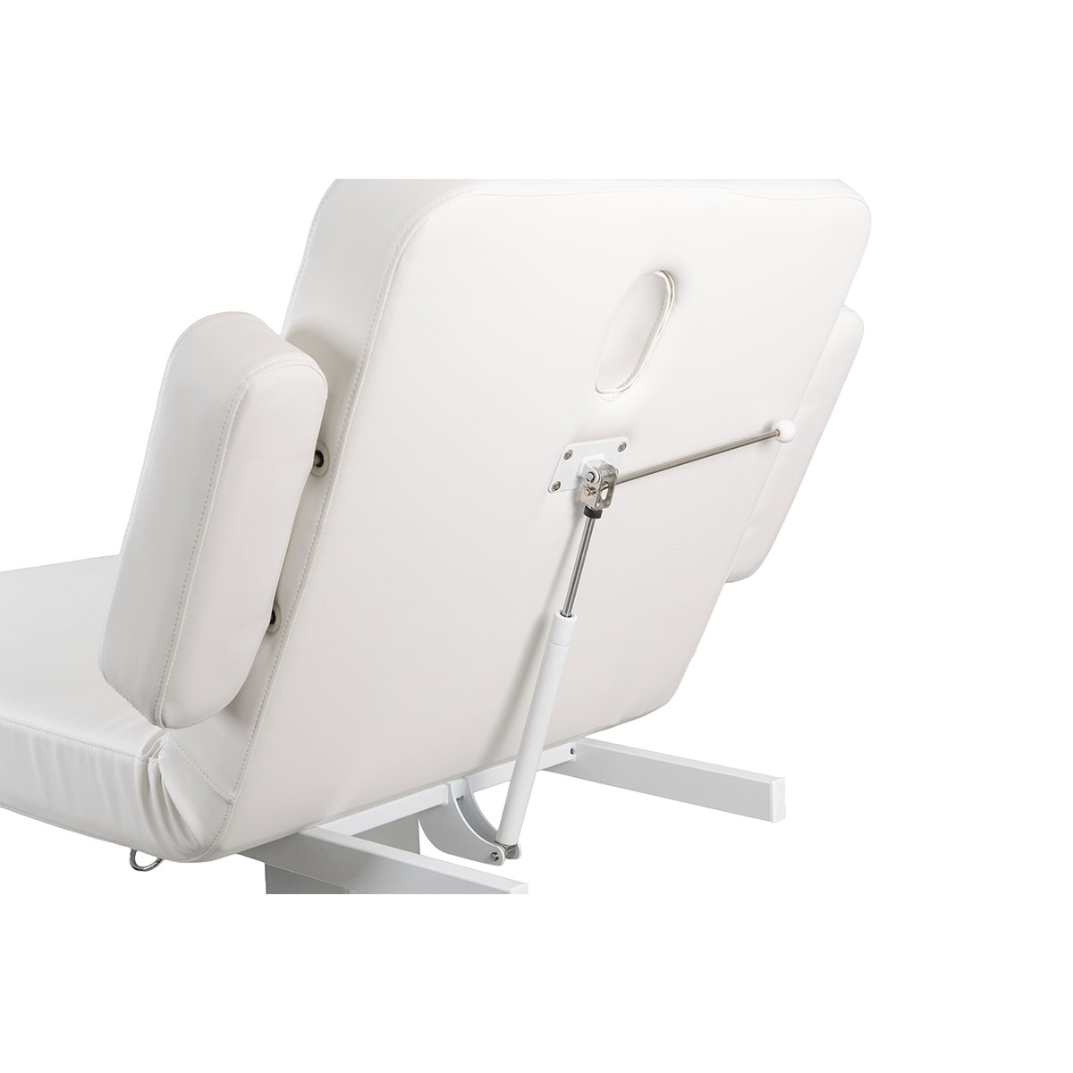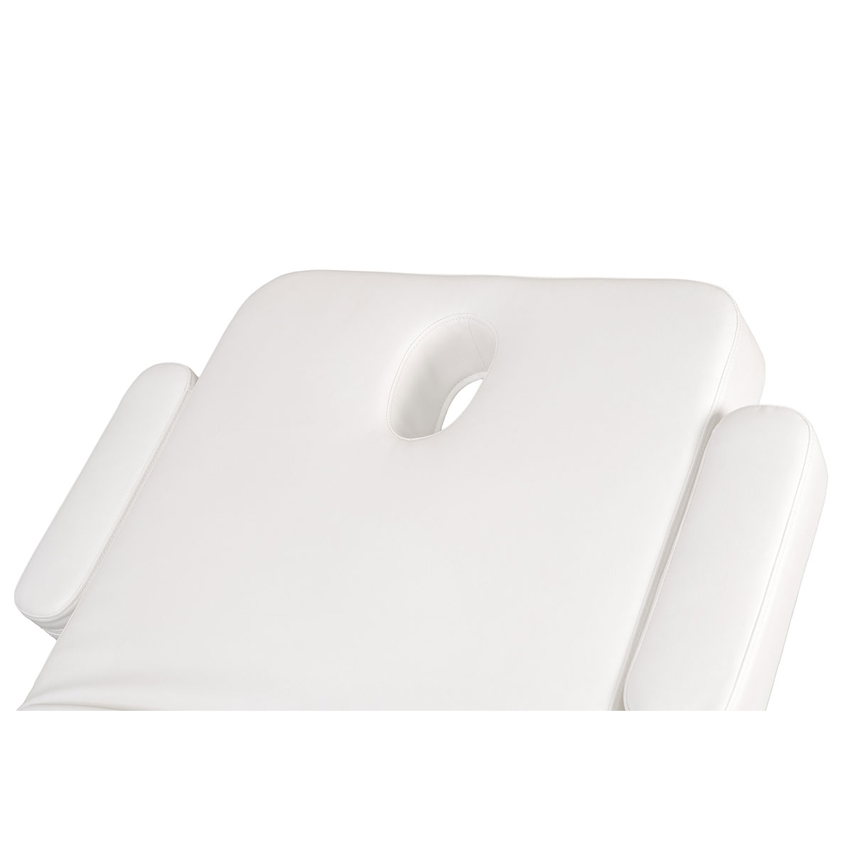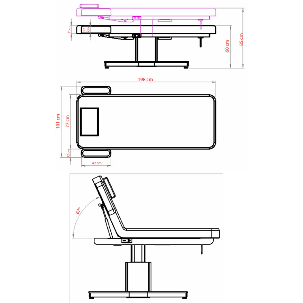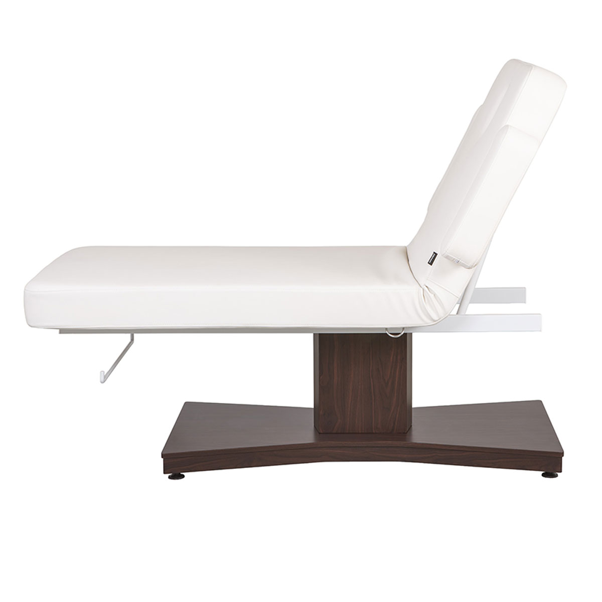 Table de massage GOID DARK, avec base en bois, réglage motorisé de la hauteur et dossier inclinable par vérin à gaz. Coussin cervical avec trou facial, accoudoirs amovibles et porte rouleau intégré,