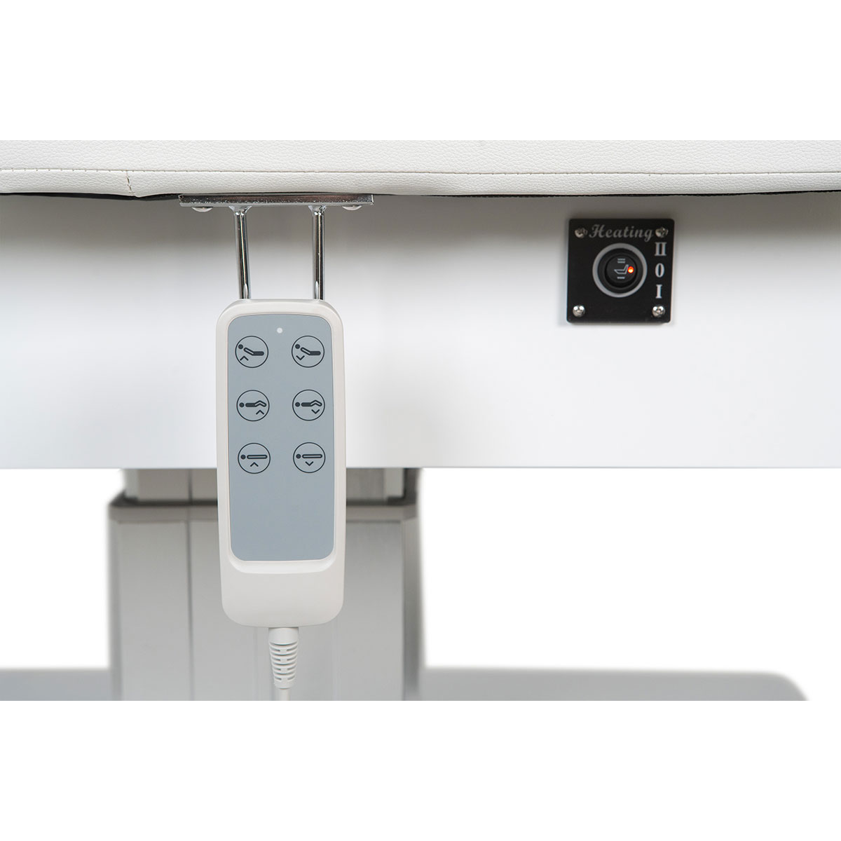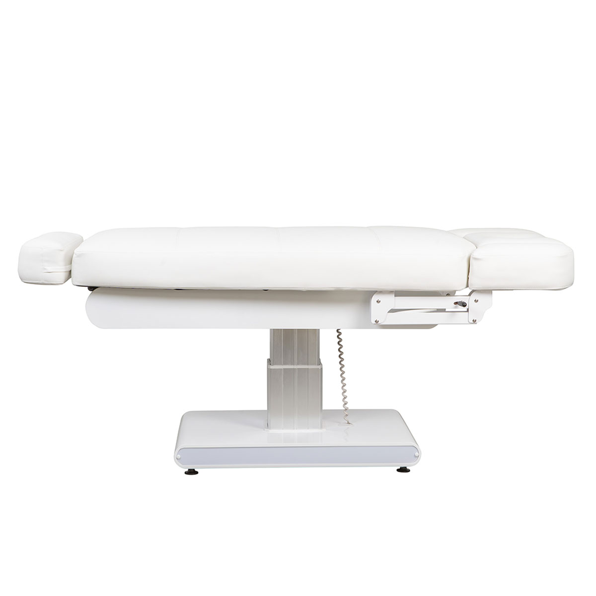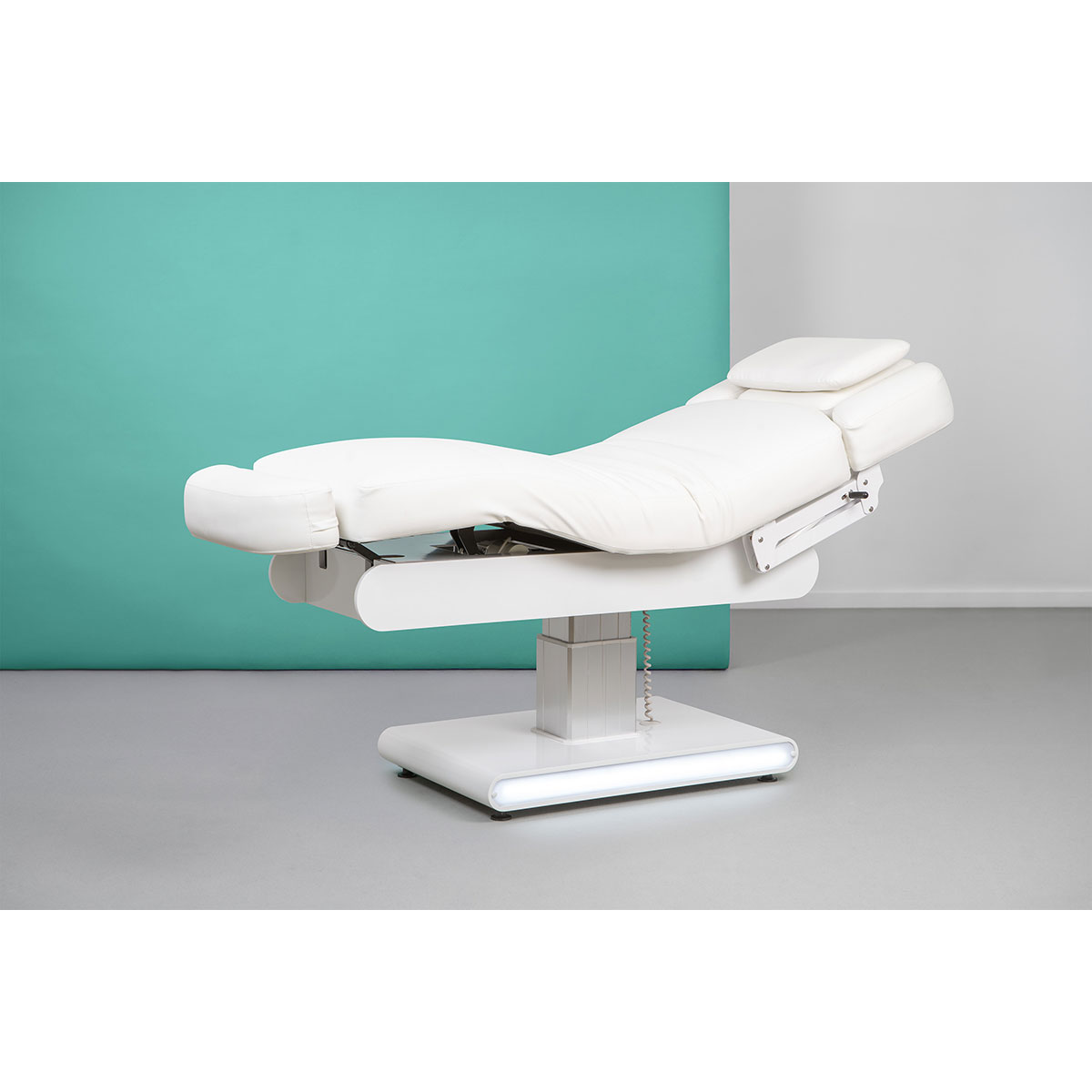 Table de massage spa chauffante LEUS WHITE, dispose de 3 moteurs permettant un réglage précis, matelas d’une épaisseur de 10 cm. Accoudoirs réglables et têtière avec trou faciale. Base LED intégrés avec couleurs interchangeable. Facile d’entretien et d’utilisation