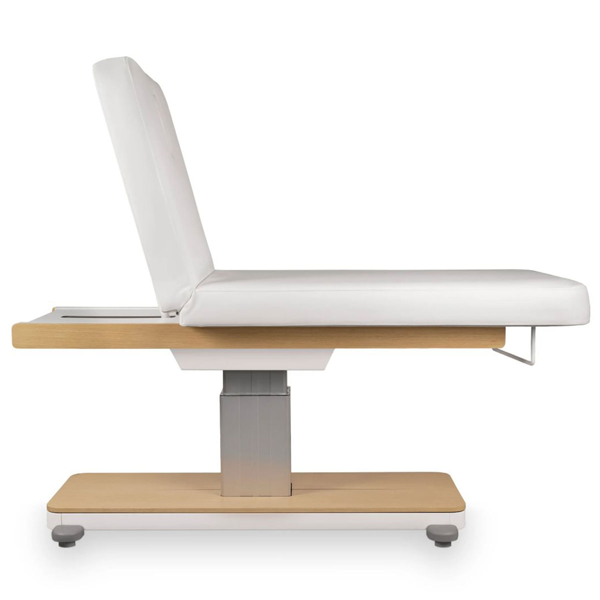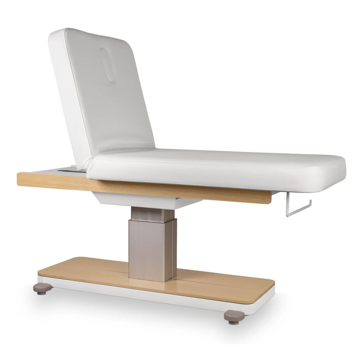 Table de massage électrique ORION W OAK, table de soins premium équipée d’un système électrique pour l’ajustement en hauteur et d’un dossier inclinable. Son revêtement confortable et ses accessoires intégrés assurent une utilisation pratique et professionnelle. Commande des réglages par télécommande filaire intégrée.