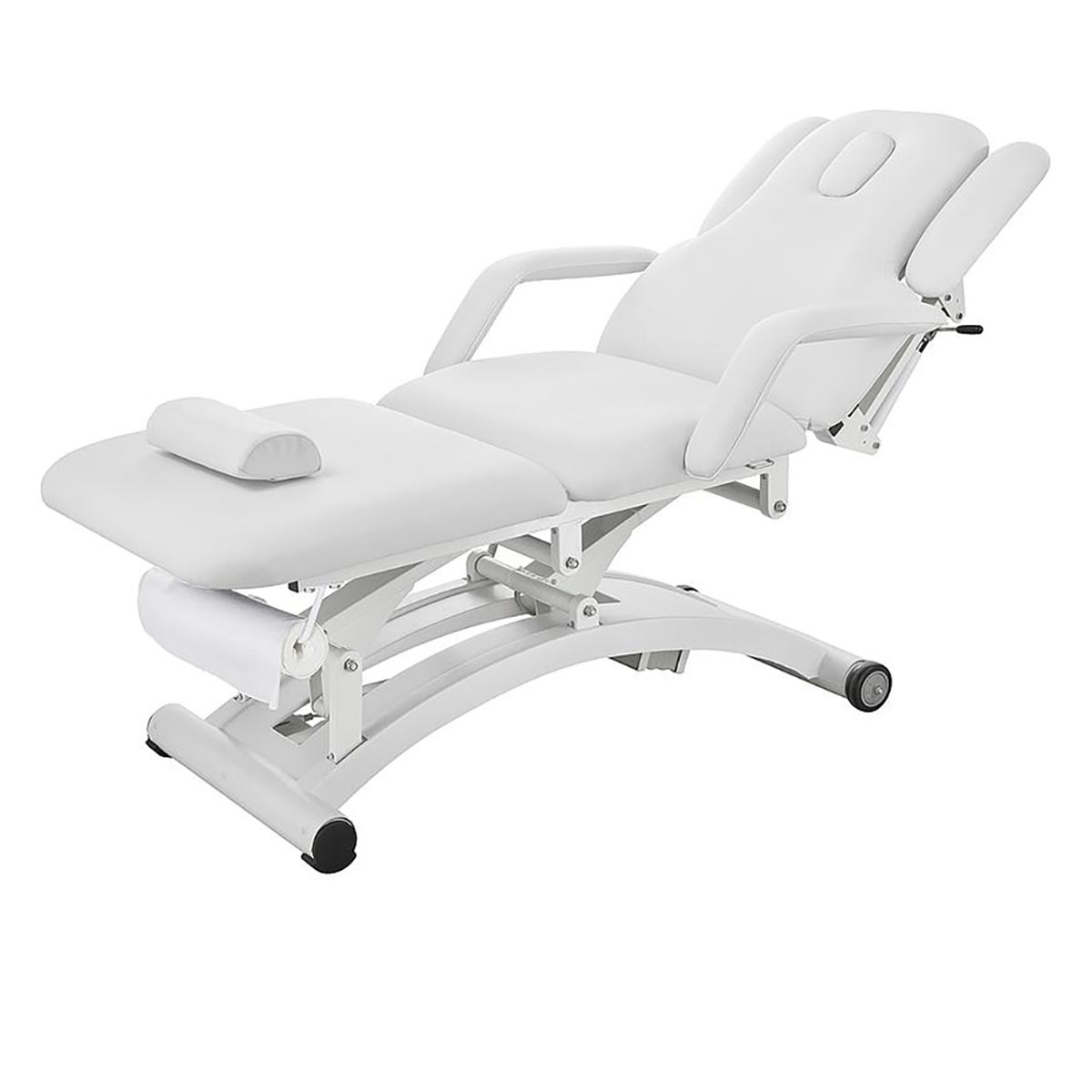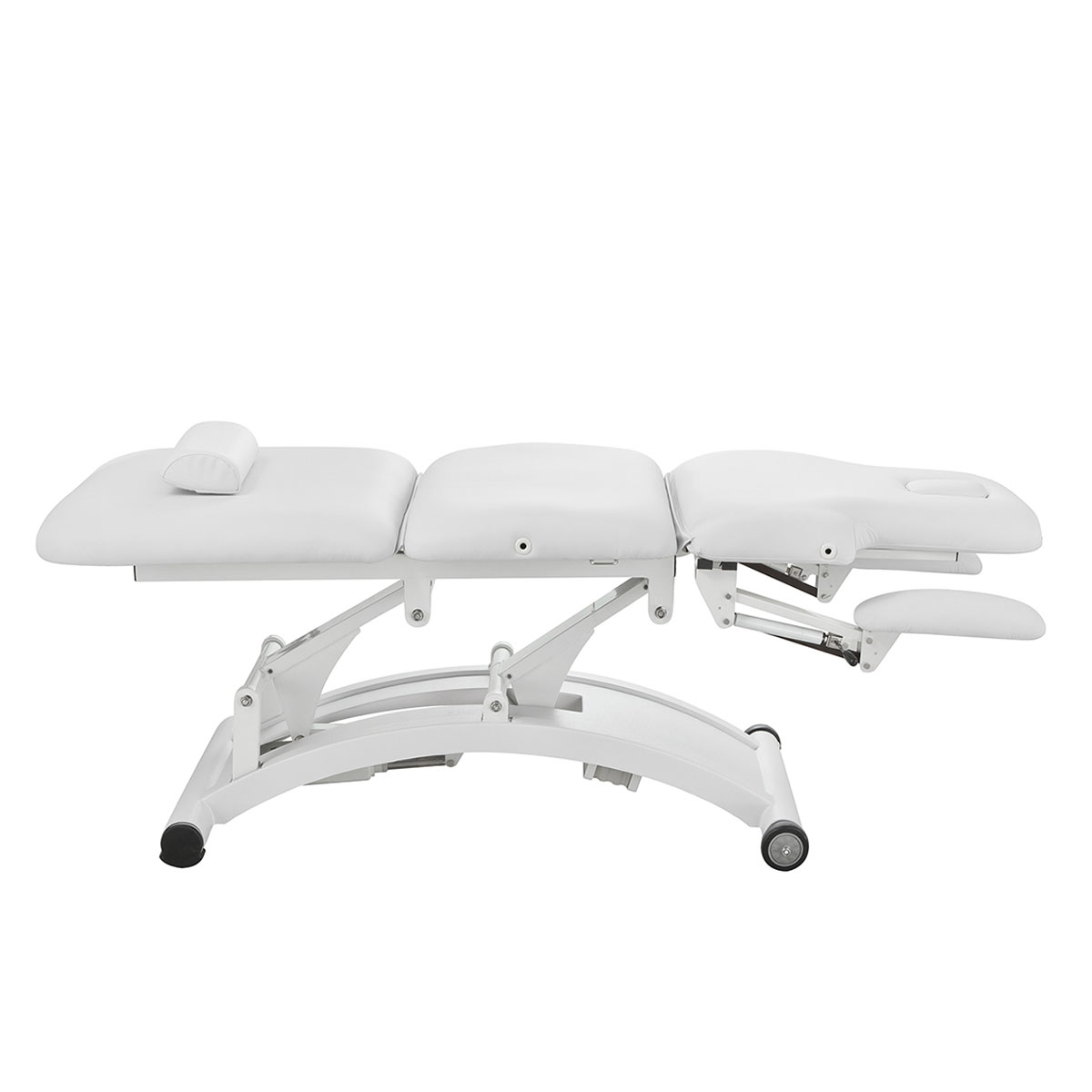Équipée de 3 moteurs électriques puissants et silencieux, elle offre un réglage fluide et indépendant de la hauteur, de l’inclinaison du dossier ainsi que du module central, permettant de positionner le patient avec précision selon les besoins du traitement. Cette motorisation optimise la qualité des soins et facilite les manipulations, tout en garantissant un confort maximal.