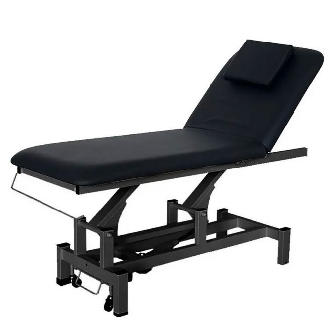 Table de massage électrique VITAL BLACK à 2 plans , équipé d’un moteur permettant le réglage de la hauteur, télécommande manuelle, dossier inclinable avec vérin à gaz et coussin repose tête. Roulettes intégrées pour facilité le déplacement de la table.