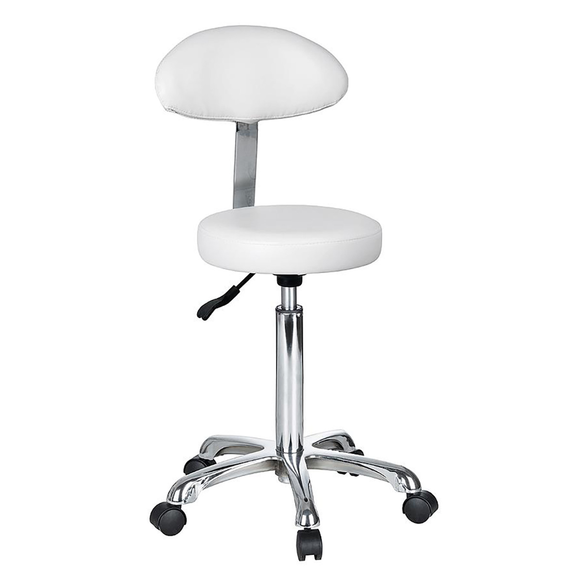 Tabouret FAST PLUS W hauteur réglable (par vérin a gaz) – Base chromée avec 5 roues – Siège plat et rond épaisseur 7,5 cm – revêtement en PU de haute qualité couleur blanc.