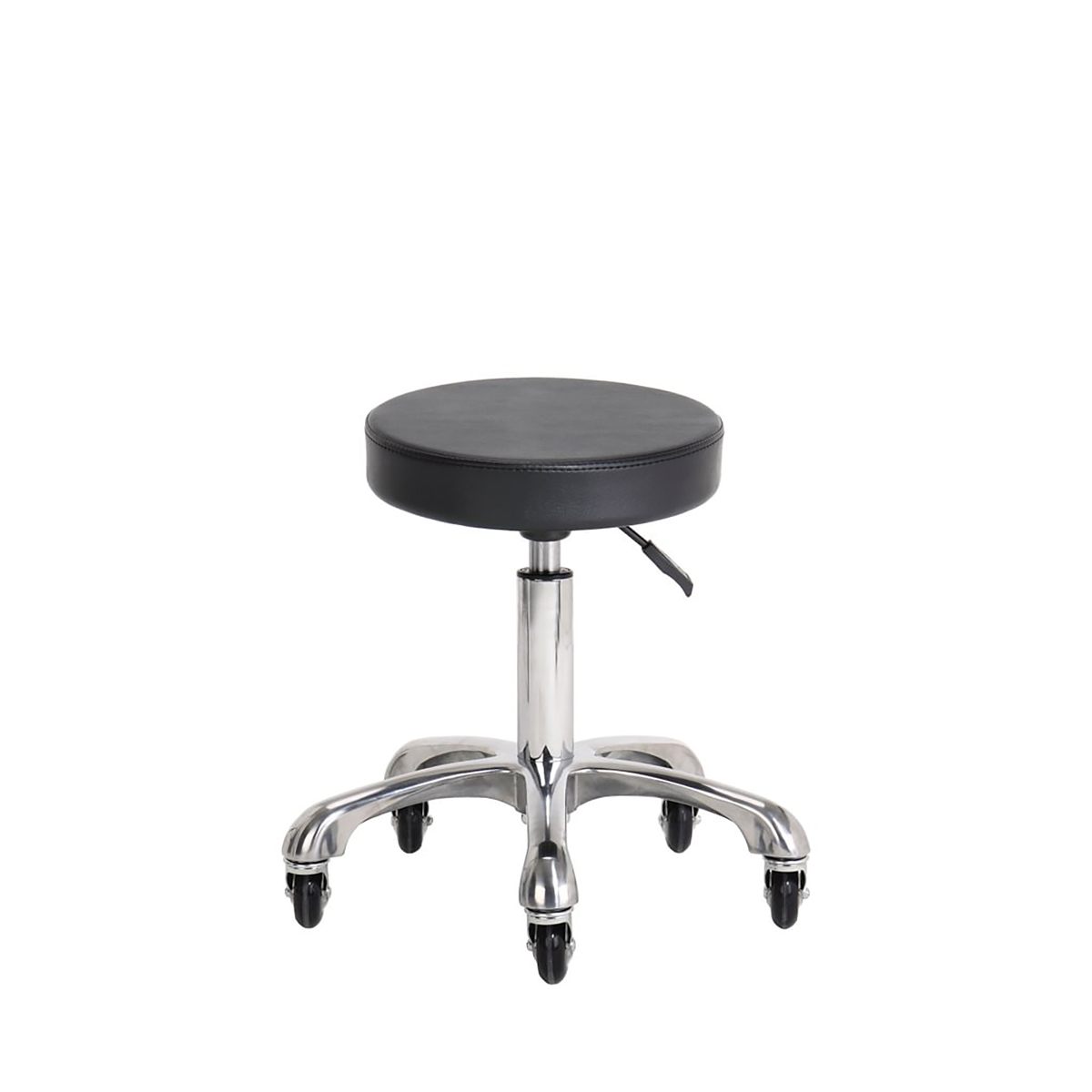 Tabouret de pédicure NIL XS , petite hauteur réglable par un vérin à gaz, hauteur 37 cm minimum, hauteur maximum 44 cm, roulettes en silicone